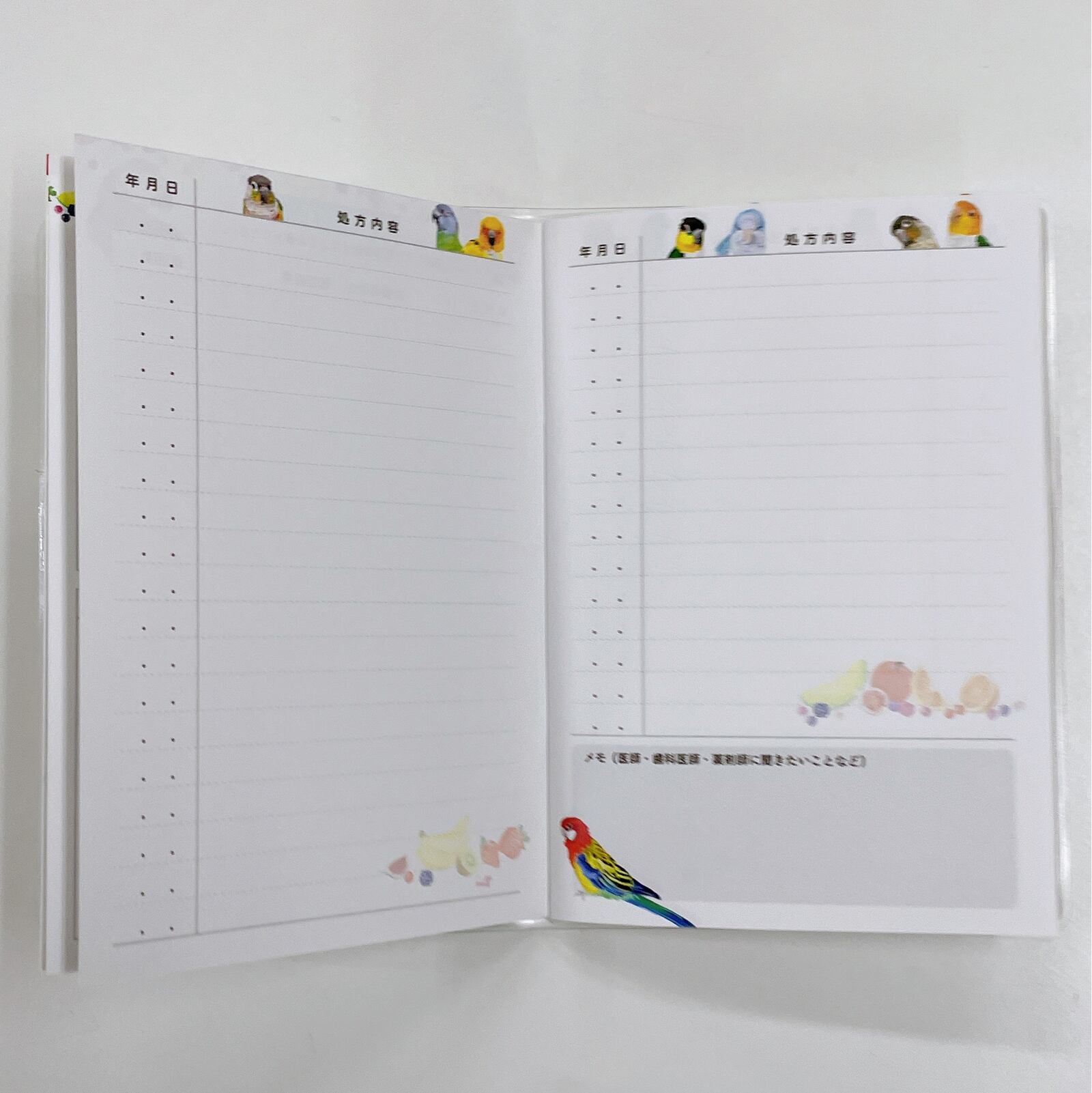 とりアートシリーズ《ロリキート》のお薬手帳です。